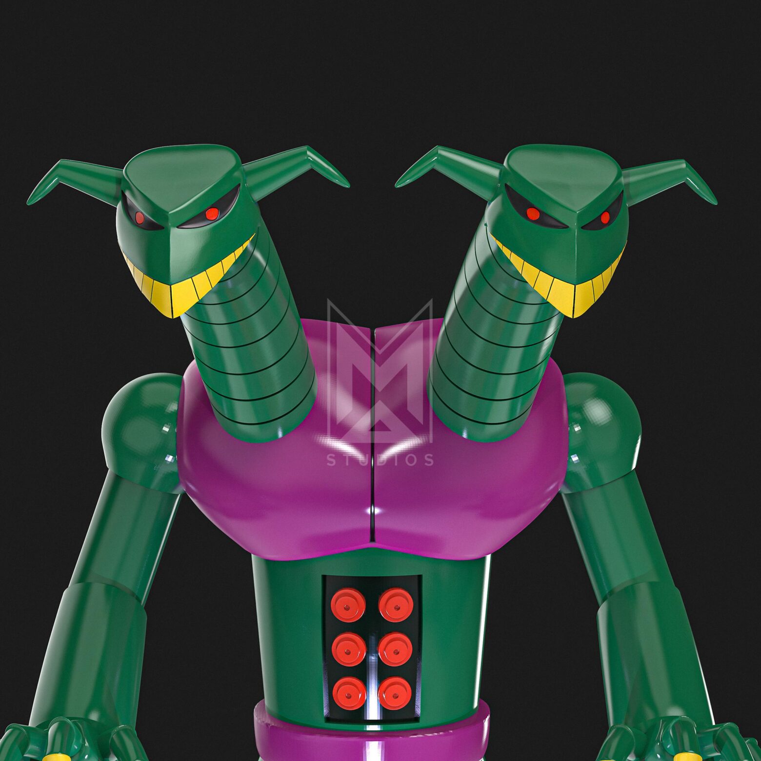 Additionally, he is the second mechanical beast to appear in the series. And Doublas M2‘s main weapon is two laser beams that come out of his eyes. Also, it has missiles in its abdomen.