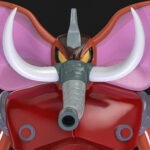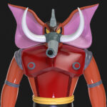 He also wears red armor, has extendable spears on his chest, and fires missiles from his trunk.