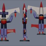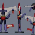 Also, it is characterized by being able to fly thanks to the propulsion system of its feet and wings. It can launch missiles through its chest, and its head is cone-shaped.