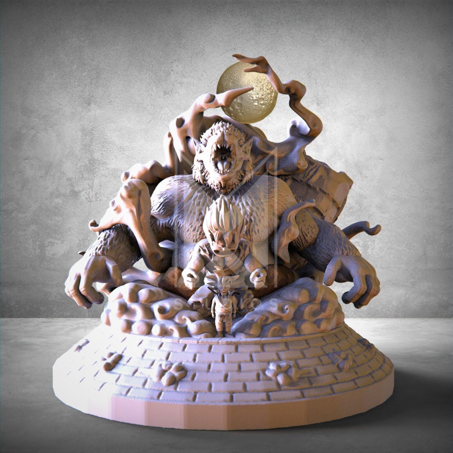 • Model made and sculpted in: Zbrush.