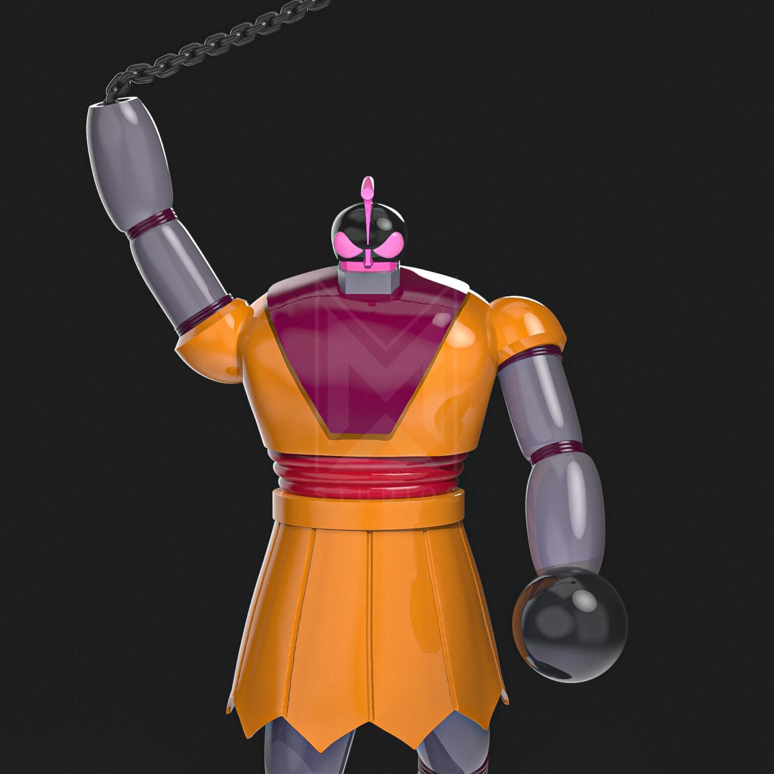 In short, Grengus C3 is a mechanical beast type character with a humanoid shape, which is characterized by having (instead of hands) large balls that can be extended and are capable of demolishing everything.