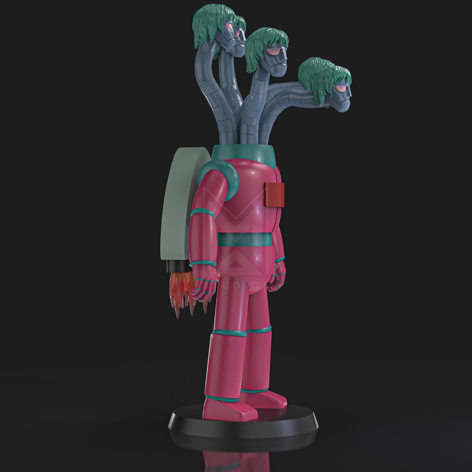 In short, Rockron Q9 Rokuron is a mechanical beast-type character with a humanoid shape, characterized by having, instead of one, five (5) purple heads, and with their mouths they expel acid.