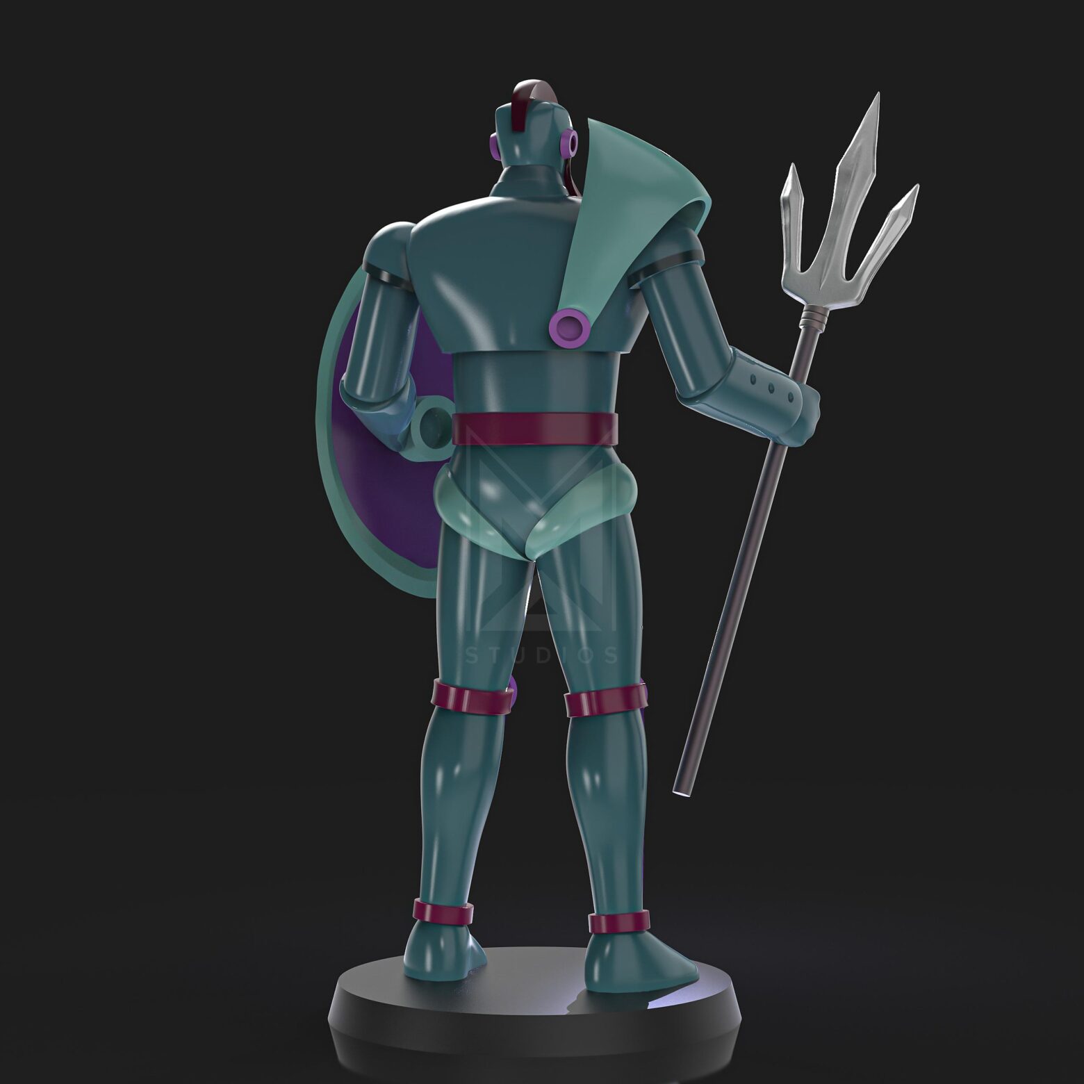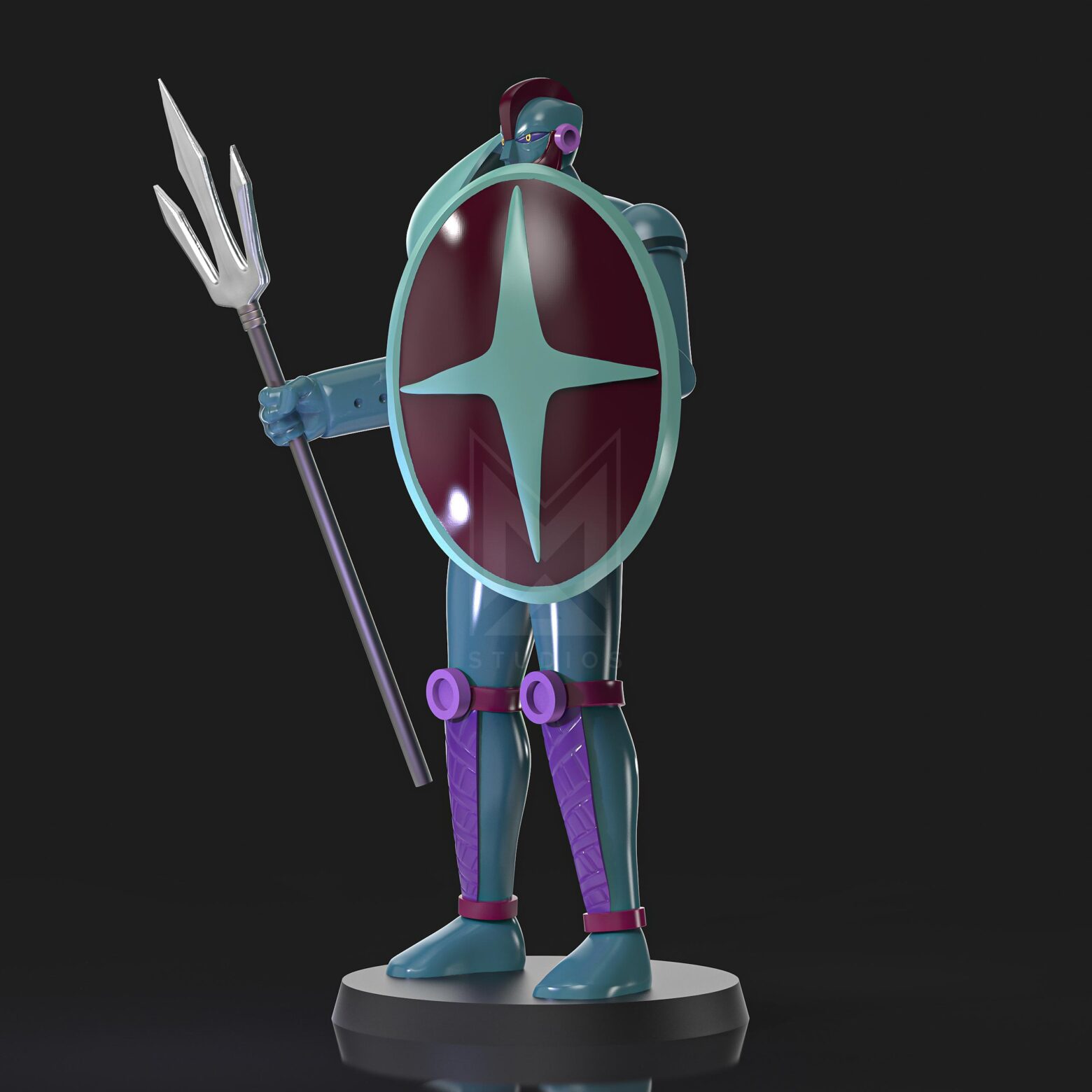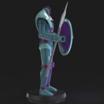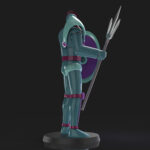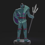 Ultimately, Spartan K5 is a mechanical beast-type character with a humanoid form, characterized by having a trident and a shield in his hands.